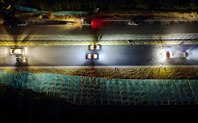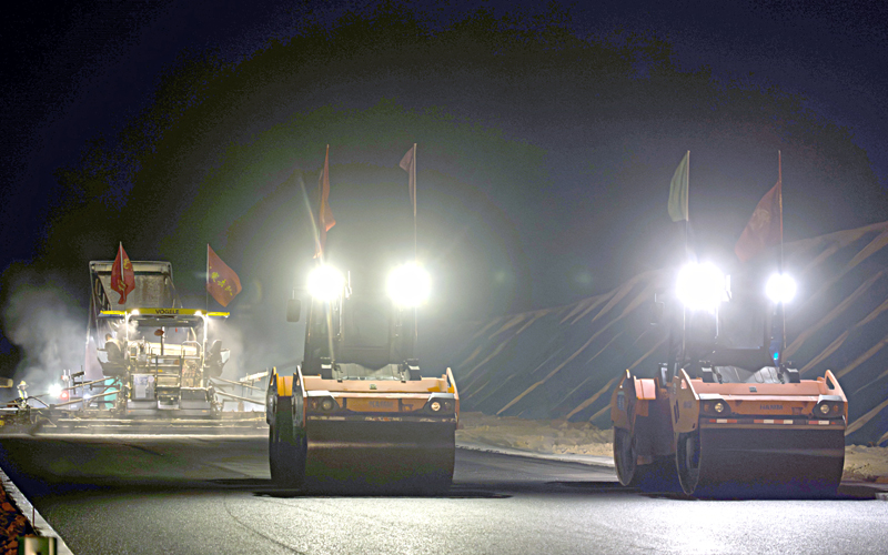 中心工程打破,路面与桥梁施工双线告捷。在全灌高速项目施工现场,首段长达500米的沥青路面下面层实验段一次性摊铺成功。该实验段规划厚度8厘米,共运用沥青混合料1016.8吨。此次摊铺采用了“双钢轮压路机+胶轮压路机”的组合碾压工艺,有用确保了路面的密实度与平整度,为后续全线打开大规模沥青路面施工供给了要害的技能参数和质量标准。