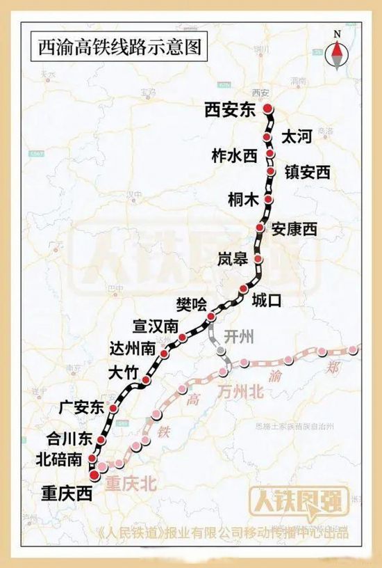 西渝高铁是我国“八纵八横”高铁网北京至昆明的京昆通道和包头、银川至海口的包(银)海通道的重要组成部分,西渝高铁康渝段正线公里,自健康西站起,经陕西省健康市,重庆市城口县,四川省达州市、广安市,重庆市合川区、北碚区,引进重庆纽带重庆西站。